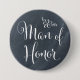 Diese Knöpfe sind für jeder für Ihre Hochzeits-Probe leicht identifizieren perfekt. Der Knopf kennzeichnet einen stilvollen Skript-Schriftart- und -tafelhintergrund mit dem Wörter Mann der Ehre und des Blumendetails.