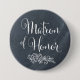 Diese Knöpfe sind für jeder für Ihre Hochzeits-Probe leicht identifizieren perfekt. Der Knopf kennzeichnet einen stilvollen Skript-Schriftart- und -tafelhintergrund mit der Wörter Matrone der Ehre.