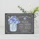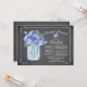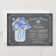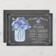 Die moderne Maurer-Glas-Brautparty-Einladung, die ein Landmaurerglas kennzeichnet, füllte mit blauem u. lila Blumen-Set auf einem Chictafelhintergrund mit einem hübschen Blumen- u. Schmetterlingsakzent und einem wunderlichen Rahmen. Drehen Sie unser Brautparty einladen vorbei, um eine zusammenpassende Rückseite für eine spezielle ExtraTouch anzusehen um. Vervollkommnen Sie für ein rustikales Land Chic-Brautparty für Fall, Winter, Frühling oder Fall.