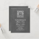 Eine Hochzeitsdinner Einladung mit einem Kalkboard Hintergrund auf beiden Seiten. Personalisieren Sie den Vordertext und das Monogramm innerhalb des dekorativen Quadrats.