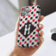 Wenn Retro-Vintager Klassiker moderne Kunst inspiriere, wird dieses geometrische Muster in Rot und Schwarz durch den Vintagen Büffel-kariert und Chekerboard-Stil inspiriert, mit einer Touch abstrakter geometrischer Formen in ästhetischem Muster, um ein stilvolles und elegantes Dekorationsmuster aus geometrischen Kreisen und Quadraten in Rot und Schwarz zu schaffen, das eine schöne Dekoration und Schutz bietet. Dieses Design kann leicht personalisiert werden mit dem eigenen Monogram Inital als das beste Geburtstagsgeschenk und Feiertage, die Weihnachten für den neuen Rot- und Schwarz-Muster-Fan für eine dekorative Kunst.