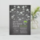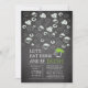 Gelassen essen Sie, Getränk und seien Sie Iren-St Patrick Tagesdie einladung, die ein Koboldhut-, Pferdeschuh-, Kleeblatt- und Bier-Tassen-Set auf einem zeitgenössischen modernen schwarzen Tafelhintergrund kennzeichnet.