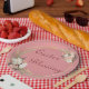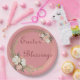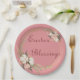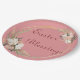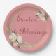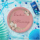 Ostersegmente Papiertafel mit Blumenmuster, heller Maronuntergrund mit Blumenkranz in Rosa, Weiß und Gold. In dunklerer Marone gibt es "Ostersegnungen". Gute Osterlieferungen!