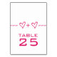 Tafelkarte zur rosa Herzäquation Tischnummer