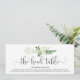 Eine Kopfkarte für die Hochzeitsfeier der Braut und des Bräutigams mit hübschen grünen Aquarellen. Streichholz über dem individuellen Hochzeitstisch oder Sitzplätzen. Ein Hochzeitsschild mit hübschem rustikalem Schriftart. Matching Single Table Cards sind auch in diesem Abschnitt verfügbar. Die Illustration wurde hier im Studio gemalt und ist einzigartig in The Stationery Concierge.
