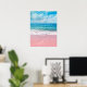 Ein hübsches und farbenfrohes Strandposter mit einem Foto türkisblauer Ozeanwellen, rosa Sand und einem aquablauen Himmel.