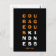 Moderne COURAGEOUS KINDNESS Postkarte mit anpassbarem Text, der Unity Day heißt. Entwickelt zur Förderung des Mobbing bei Kindern und Erwachsenen. Die Hauptwörter erscheinen in einem 3x6 Gitterformat in fett orange und weiß Typografie. Unity Day kann durch Ihren Namen oder motivierend Text Ihrer Wahl ersetzt werden (bis zu zwei Zeilen). Matching-T - Shirt verfügbar.