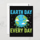 Senden Sie diese lustige Postkarte, um das Bewusstsein für den Umweltschutz zu schärfen und unseren Planeten Erde auf Erden Tag und jeden Tag zu ehren. Diese niedliche Postkarte zeigt eine wunderbare Cartoon-Darstellung unseres Planeten mit einem fröhlichen Ausdruck und der Formulierung "Earth Day Every Day" in einem blau-grünen All-Caps-Schriftart.