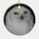 Feiern Sie jeden Tag den Tag der Erde mit diesem runden Ornament, das das Foto eines weißen Schneeauuls mit gelben Augen zeigt. Ein großartiges Geschenk für den Sammler der Eule und den Fan der Wildnis. Auf beiden Seiten gedrucktes Bild. Wählen Sie Ihren Schmuckstil aus.