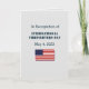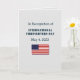 Christliche Begrüßungskarte für den Internationalen Feuerwehrmannstag mit amerikanischer Flagge auf der Front, Schrift Vers und Text im Inneren.