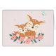 Süß zeichnend Mutter und Hirsche auf einem Baumstumpf mit Blume und grünen Schmetterlingen.