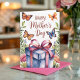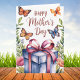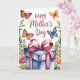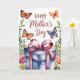 Dieses Design ist komplett mit einer Aquarelldarstellung von Schmetterlingen, Grünpflanzen, Blume und einem Geschenk. Die Worte "Muttertag glücklich" erscheinen auch auf der Vorderseite der Karte. In der Karte steht: "Mama, du bist mein Schmetterling - graziös, stark und voller Liebe". Sie können dies durch Ihr eigenes Sprichwort ersetzen, wenn Sie möchten. Viel Spaß!