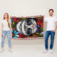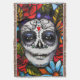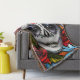 Vibrierender Blumentag des toten Bildes auf einer reizenden Decke. Umgeben reiches Juwel getonte Blumen das Gesicht einer Frau, das für den mexikanischen Tag der Toten gemalt wird. Behalten Sie warm und cozy, während Sie Zeit nehmen, die Rosen zu riechen.