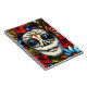 Lebhafter Blumentag des Toten Bildes auf einem schönen Notizbuch. Reiche, juwelenfarbene Blume umschließen das Gesicht einer Frau, das für den mexikanischen Tag der Toten gemalt wurde. Nehmen Sie sich Zeit, um die Rose zu riechen...und Notizen machen, oder sonst...