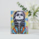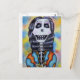 Dieser glückliche und lächelnde Tag des Toten Skeletts ist von meinem ursprünglichen Farbstift gezeichnet. Dieses Skelett ist für ihren Tag der Toten in einem farbenfrohen orangen und blauen Schal gekleidet und hält weiße Blume. Der Hintergrund hat ein Aquarellbild mit Gelb, Pinks und Blues. Sehen Sie in meinem Shop Art by MAR für weitere Produkte mit diesem Bild.