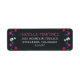Niedlicher Tag des Toten Rücksendeadressen-Aufklebers mit rosa und weißen Schriftzeichen auf einem weichen schwarzen Hintergrund, der mit Rändern von Zuckerschädeln und farbenfrohen Blume geschmückt ist. Entworfen, um mit unserem Dia de los Muertos Party und Geburtstagskollektion zu koordinieren.