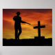 Soldat stehend an einem Friedhof. Gedenken an diejenigen, die im Krieg gefallen sind.