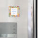 Ein quadratischer, individualisierbarer Magnet mit einem lustigen Bild von Stoffsuhren auf einer Wäscheleine, die mit Buttonen aus Holz gehalten wird. Sehen Sie die gesamte Kids-Magnet-Sammlung in den SPEZIELLEN TOUCHS | Abschnitt Gastgeschenke. Dieses Produkt ist nicht mit dem ursprünglichen Urheberrechtsinhaber verbunden oder verbunden.