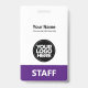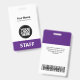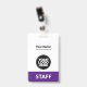Dieses Abzeichen mit beruflichem Verwaltungsnamen ohne Foto, mit Scan-Bar und großem Firmenlogo ist einfach zu personalisieren. Ein einfaches Business-Design in trendigen, lila und weißen Farbtönen, die in Vorder- und Rücken-Größen vollständig anpassbar sind, serifenlose Schriftart und ein berufliches und klares Aussehen, perfekt für kleine Geschäftsangestellte, Chef, Gäste. Diese Business-ID-Abzeichen sind mit Lanyard, Metallklammer oder mit Retraktierbar erhältlich. Keine Mindestbestellung, aber rett Geld und genießen Sie Zazzle Rabatte bei mehreren Bestellungen!