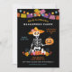 Diese farbenfrohe Einladung ist perfekt, um einen Tag der Toten oder Dia de Los Muertos Thema Halloween-Party zu feiern. Es zeigt eine typische Abbildung dieses Tages mit einem Skelett, Blume und einer Jack-o-Laterne. Dieses festliche Design ist ideal, um den Ton für ein lustiges Event Set.