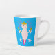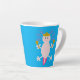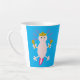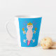 Diese phantastische latte Tasse zeigt ein digitales Kunstbild eines niedlichen axolotl, eines mexikanischen Salamander, der einen Sombrero trägt und Maracas schüttelt. Die axolotl ist hellrosa mit leuchtend rosa Federkiefern und einem hellrosa Schwanz. Es hat riesige Augen und ein Lächeln auf dem Gesicht. Der Sombrero ist gelb mit einem grünen Kakteen in der Mitte. Der Kakteen ist von Kakteen und mexikanischen Sonnenblumen umgeben, die auch Tithonia genannt werden. Die Maracas sind gelb mit roten und grünen Blume und gewellten Linien.