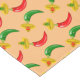 Diese phantastische gemusterte Tischdecke ist mit Chilis, einem roten Chili und einem grünen Chili ausgestattet. Beide haben schwarze Augen und rosa Mund. Jeder Chili trägt einen Sombrero-Hut, der in seiner gegenteiligen Farbe zum Chili des mexikanischen Tages des Toten Festivals Dia De Los Muertos gekleidet ist. Der Sombrero enthält auch drei Blume mit abwechselnden roten und grünen Blütenblättern, die die Fahne Mexikos darstellen.