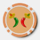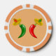 Dieses phantastische Set von Poker-Chips verfügt über ein Paar Chilis, einen roten Chili und einen grünen Chili. Beide haben schwarze Augen und rosa Mund. Jeder Chili trägt einen Sombrero-Hut, der in seiner gegenteiligen Farbe zum Chili des mexikanischen Tages des Toten Festivals Dia De Los Muertos gekleidet ist. Der Sombrero enthält auch drei Blume mit abwechselnden roten und grünen Blütenblättern, die die Fahne Mexikos darstellen.