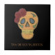 Tag der Toten Keramik Kachel, mit einem roten und goldenen Zucker Schädel-Design und Gold anpassbare typografische Schrift. Mit einem schwarzen Hintergrund ist dieses lustige Objekt ideal für Ihre Dia de los Muertos oder Halloween Wohngestaltung.