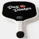 "Day Dinker" oder eigens angefertigtes Paddel-Paddel in Schwarz und Weiß mit trendigem Retro-Script-Schriftart und korallorangefarbenem Pickleball-Logo mit bearbeitbaren Farben. Personalisieren Sie mit Ihrem Namen und optionalen Kontaktinformationen wie Telefonnummer oder Social Media Link.