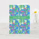 Eine hübsche Karte der Mutter Tages, mit dem Gruß auf französisch und einem Muster der cremefarbenen Scheinorangen-Blüte und des hellen rosa Weigela auf einem hellen blauen Hintergrund. Der Entwurf ist von einer handgemalten Wasserfarbe durch Judy Adamson. Das Innere wird leer verlassen, damit Sie Ihre eigene Mitteilung addieren.