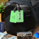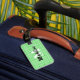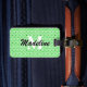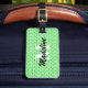 Cooler grüner Strickhintergrund mit Monogramm. Personalisierter mit Monogramm Brief und Namensschild für Koffer und Beutel. Elegantes Typografie-Design. Gutes Geschenk für Familie und Freunde.