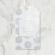 Dieses Geschenkschild wird mit einem festlichen Urlaubssnowflaktdruck in Silberfolie gezeigt. Passen Sie dieses Objekt an oder kaufen Sie, wie es ist.