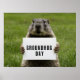 Erdhog-Tagesbild: Groundhog mit einer weißen Karte für Personalisierte Nachrichten. Feiern Sie den Groundhog Day mit dieser bezaubernden Abbildung, in der ein Bodenhaken mit einer weißen Karte dargestellt ist.