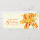 Detaillierte Aquarellfarben einer wunderschönen Hemerocallis-Blume auf dieser hübsch orangen und gelben blumigen Einladung. Gefangen für den Tag, da diese Blume meist nicht länger als 24 Stunden dauern, eine sehr passende Blume für Ihren besonderen Hochzeitstag. Hemerocallis orange Hochzeitseinladung, Design angepasst aus der originalen Aquarellmalerei von Sarah Trett.