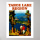 Vintage Reiseplakat, das das Gebiet des Tahoe-Sees als Urlaubsziel fördert.
