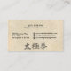 Ein dynamisches Visitenkartendesign für Tai Chi und Qigong Profis. Die Vorderseite zeigt die Silhouette eines Praktizierers in der Mittelform, das Set gegen eine kühn besetzte Pinselpinseldarstellung des Yin-Yang-Symbols, das Durchfluss, Fokus und Harmonie in Bewegung hervorruft. Der texturierte Hintergrund verleiht dem Design ein zeitloses, Pergament-ähnliches Gefühl. Auf der Rückseite erscheinen die chinesischen Schriftzeichen für Tai Chi Chuan (太 極 拳) unter den Kontaktdetails des Instruktors, was Authentizität und kulturelle Wurzeln verstärkt. Eine gute Wahl für Lehrer und Akademiker, die sowohl die Kunst als auch die Disziplin der Tai Chi Praxis erfassen möchten.