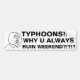 TAIFUNE!!!!! WARUM U RUINE-WOCHENENDE IMMER?!?!? WARUM? WARUM? WARUM? WARUM KOMMEN U NIE AUF EINEM DIENSTAG?! AN?