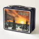 Winter in der arktischen Taiga. Mit der Sonne am Horizont leuchtet der Schnee und der Himmel brennt orange und gelb. Es erscheint auch das Textlesen "Alaska", das Sie auf Wunsch ganz einfach löschen können. Fügen Sie Ihren eigenen zusätzlichen Text hinzu.