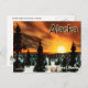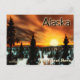 Winter in der arktischen Taiga. Mit der Sonne am Horizont leuchtet der Schnee und der Himmel brennt orange und gelb. Es erscheint auch das Textlesen "Alaska". Fügen Sie Ihren eigenen zusätzlichen Text hinzu.