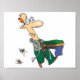 Dieses Design ist ein Schneider. Der Schneider trägt Stoff und sieht hektisch aus. Dieses maßgeschneiderte Design sieht auf diesem Poster großartig aus