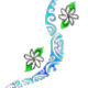 Tiaré-Blüten mit polynesischen "Marquisiens"-Motiven. Sie symbolisieren das Meer, die Erde, den Himmel, die Macht, die Vision und die Vorfahren.