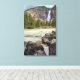 Die donnernden Gewässer des Takakkaw Falls in Yoho National Park in British Columbia Kanada. Diese beliebte Touristenattraktion zeichnet sich durch das türkisblaue Wasser der Gletscherschmelze aus. Er stürzt 400 Meter in den Yoho Fluss unten.