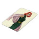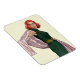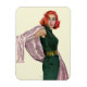 Artist: Coby Whitmore Red haired woman in a green dress holding out a pink shaw.