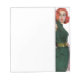 Artist: Coby Whitmore Red haired woman in a green dress holding out a pink shaw.