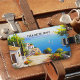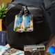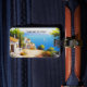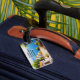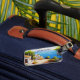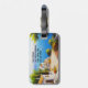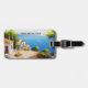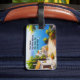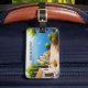 Luggage tag with a modern fine art painting showing a coastal Italian landscape on a beautiful sunny day.