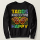 Freuen Sie sich auf das köstliche Ambiente unseres Designs "Tacos machen jedermann glücklich". Mit einer fröhlichen Typografie und einer spielerischen Taco-Illustration erfasst dieses Design die universelle Liebe für Tacos und das Glück, das sie bringen. Wunderschön für Taco-Fans, Feinschmecker und alle, die Tacos für eine gute Zeit halten. Ob Dienstag oder Tag, feiern Sie Ihre Leidenschaft für Tacos und teilen Sie das Glück mit diesem charmanten Design!