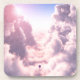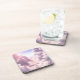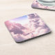 Ein einsamer Heißluftballon schwimmt durch den hellrosa Canyon zwischen hohen Wolken. Die Sonne, tief im pastellfarbenen Himmel, leuchtet hinter dem Rand der Billows und sendet Lichtströme zum Betrachter.