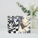 Diese Postkarte zeigt ein schönes Bild von Tal Mikhail, einem der beststen Schachspieler aller Zeiten, sowie ein wirbeliges Schachbrettdesign. Das Gemälde erfasst die Intensität und Leidenschaft des Spiels und ist damit die perfekte Ergänzung zu jeder Sammlung von Schachfreunden.