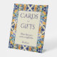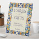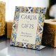 Blauer und braun bunt Vintage mexikanische talavera azulejo Fliesen Hochzeitsgeschenke Tafel, handschriftlich lässigen Schriftart bunte Talavera Fliesen Vintage Ornamente Hochzeitstisch Dekoration