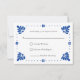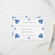 Diese mexikanische Talavera RSVP Karte wird von der schönen Ziegelkunst und Volkskunst inspiriert, die in Mexiko und im gesamten Südwesten der USA zu finden ist. Die markante blaue Farbe und die klassische Typografie schaffen ein elegantes Aussehen, das sowohl modern als auch traditionell ist. Diese Hochzeitsumrandkarte zeichnet sich durch ein schönes Design auf der Rückseite aus. Passen Sie den Wortlaut an, oder verließ, wie es ist.